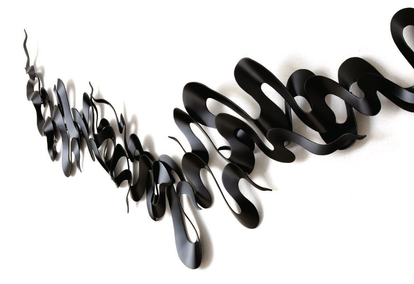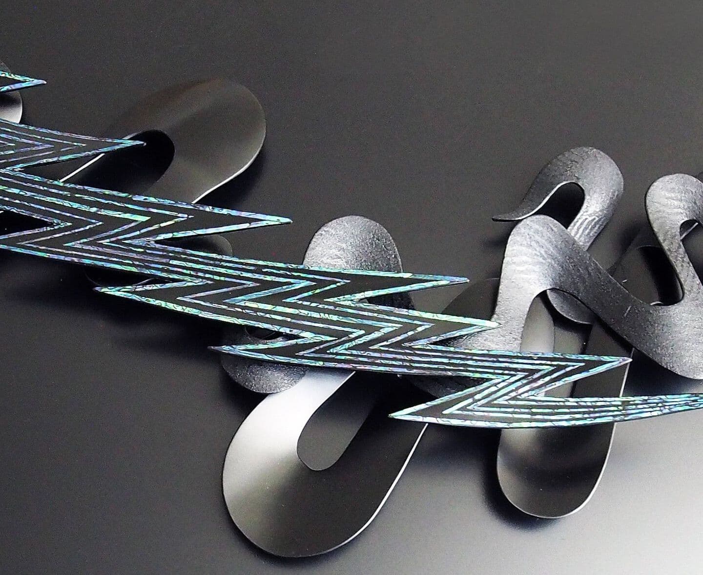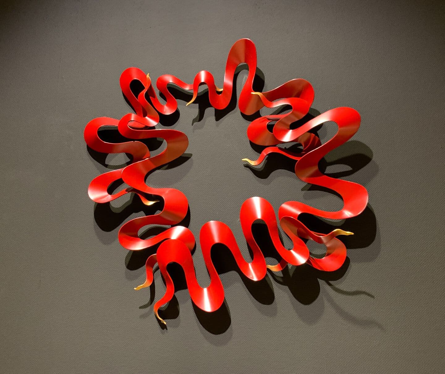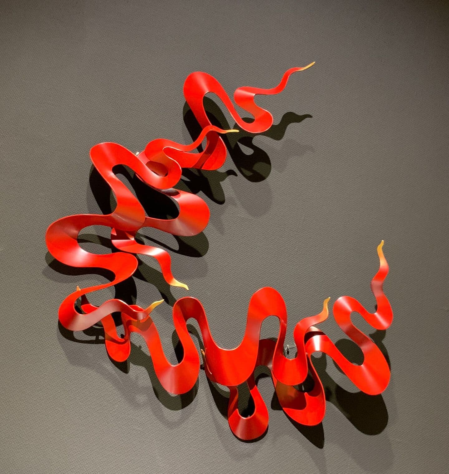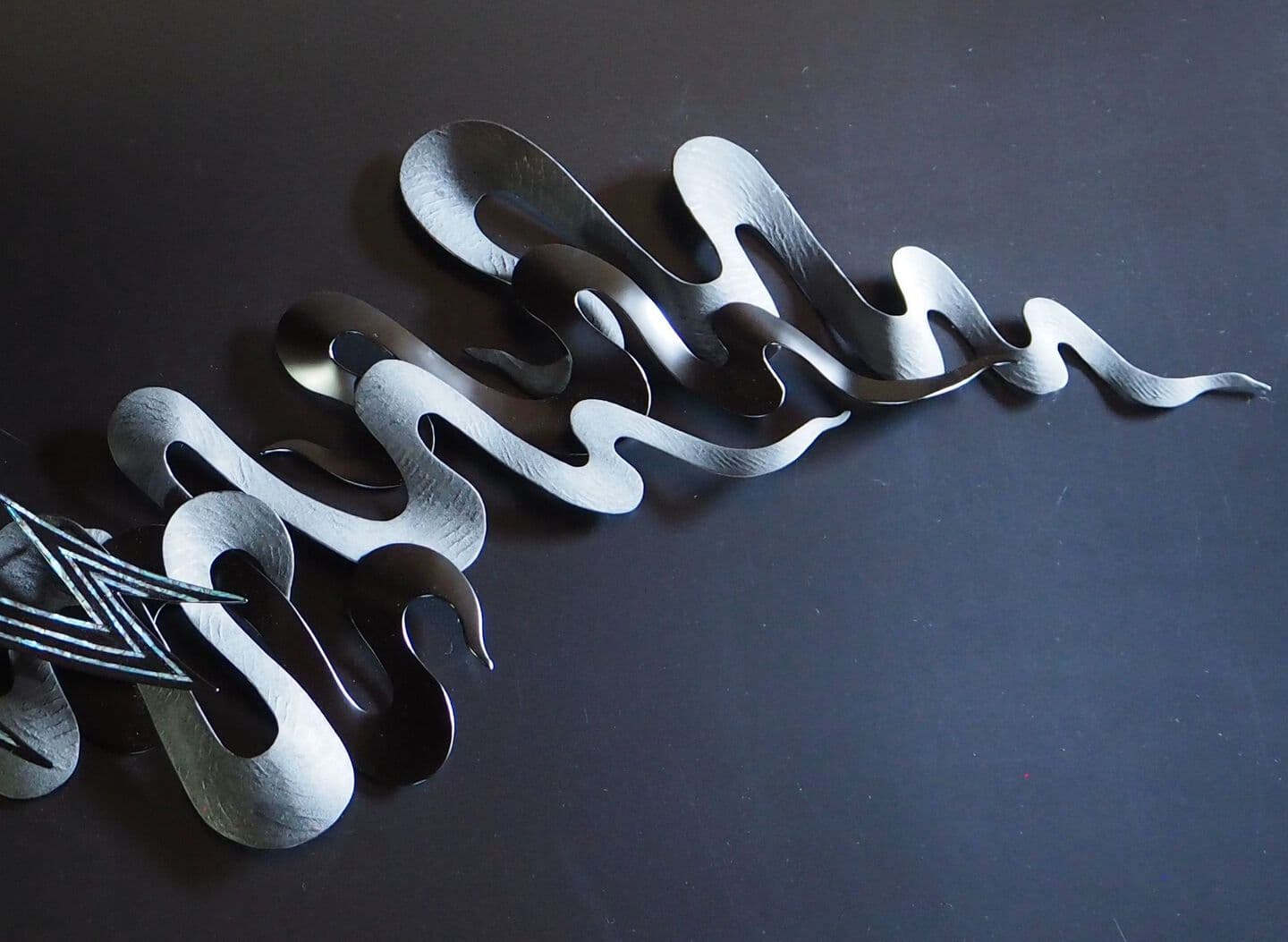 This work is wall a sculpture made by the combining of kanshitsu parts. The base shapes are made of kanshitsu and the surface decoration is textured with urushi undercoating paste with tinted silver foil (銀箔), tin and gold powder. All my works are about the possibilities of kanshitsu, the freedom, lightness, and potential of the material.